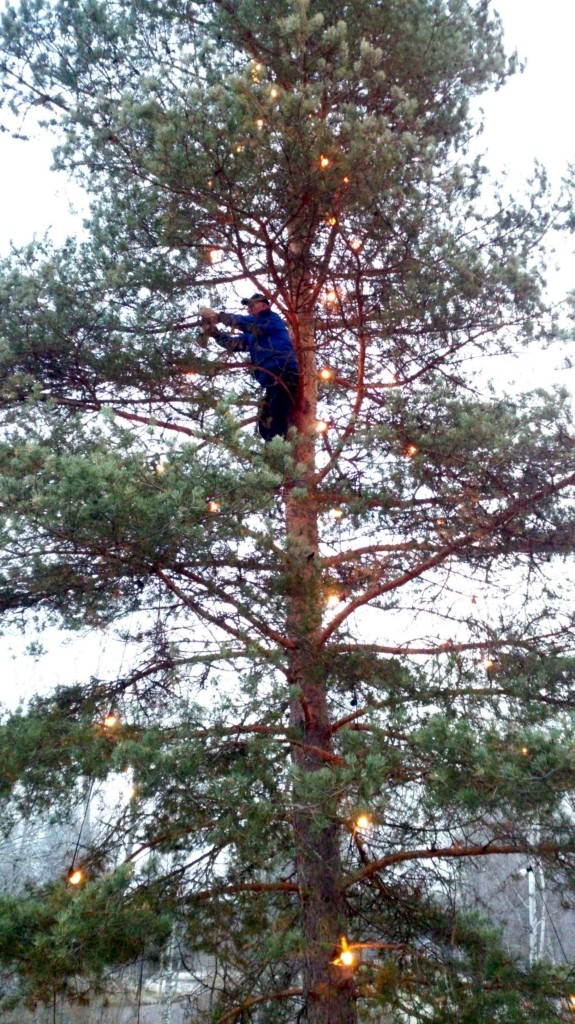 Jultallen fick nya glödlampor Nyss fyllda 70 år klättrade Ole Olin, vig som en apa, upp i tallen och bytte de trasiga glödlamporna. Sen klättrade han ned och åkte till Thailand.